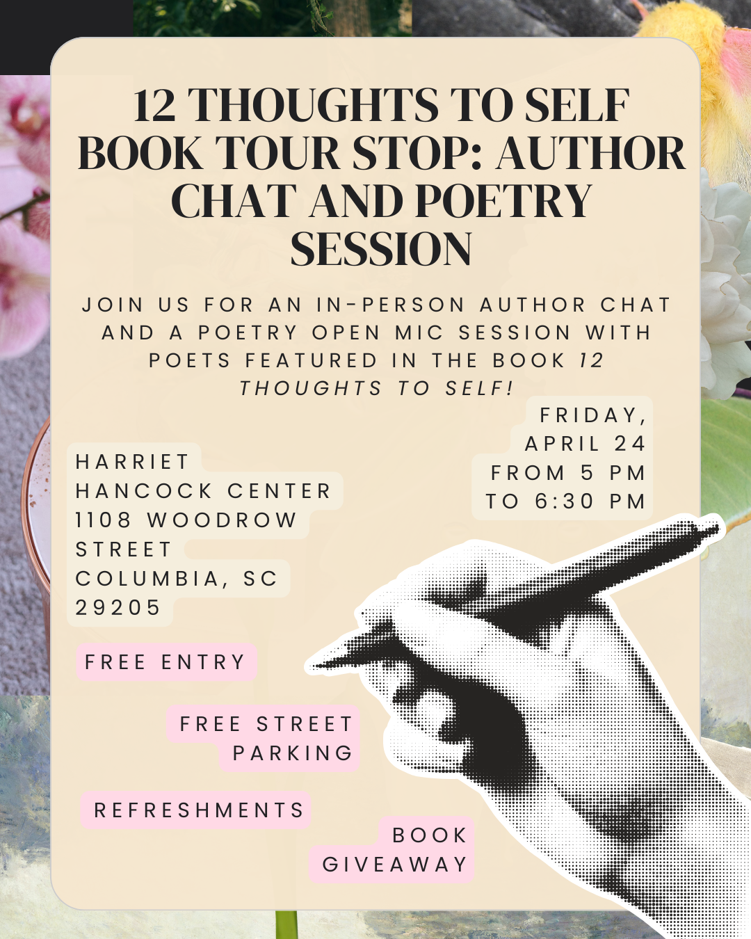12 Thoughts to Self Book Tour Stop: Author Chat and Poetry Session flyer12 thought to Self Book Tour Stop